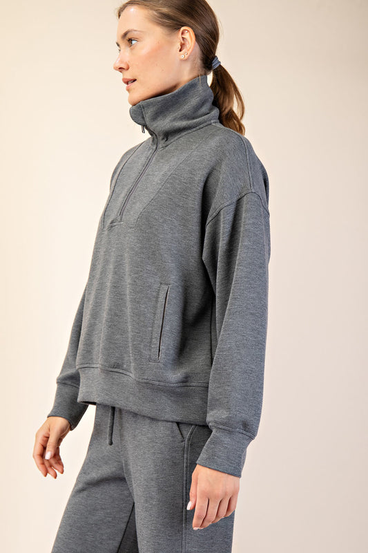 Rae Mode Scuba Quarter Zip Mock Neck Pullover