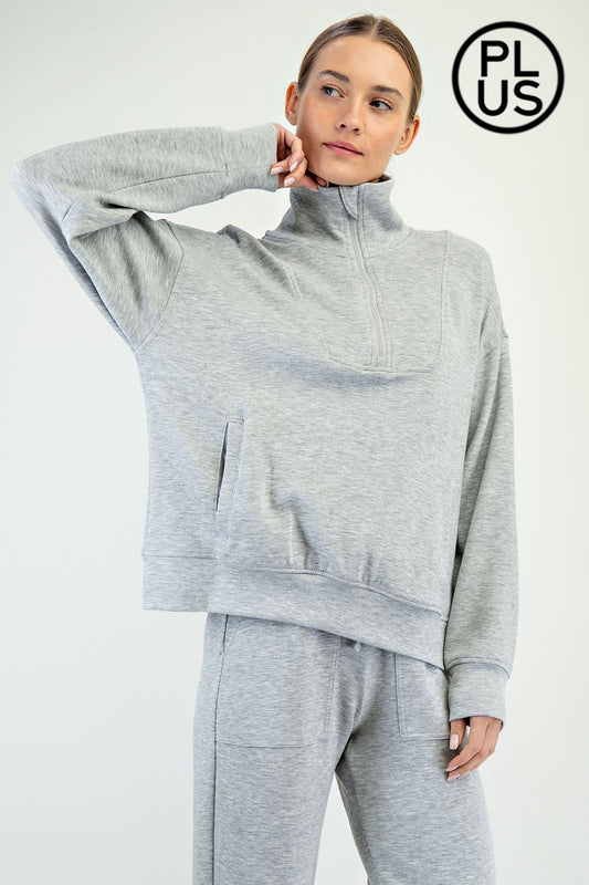 Rae Mode Plus Size Modal Poly Span Quarter Zip Mock Neck Pullover