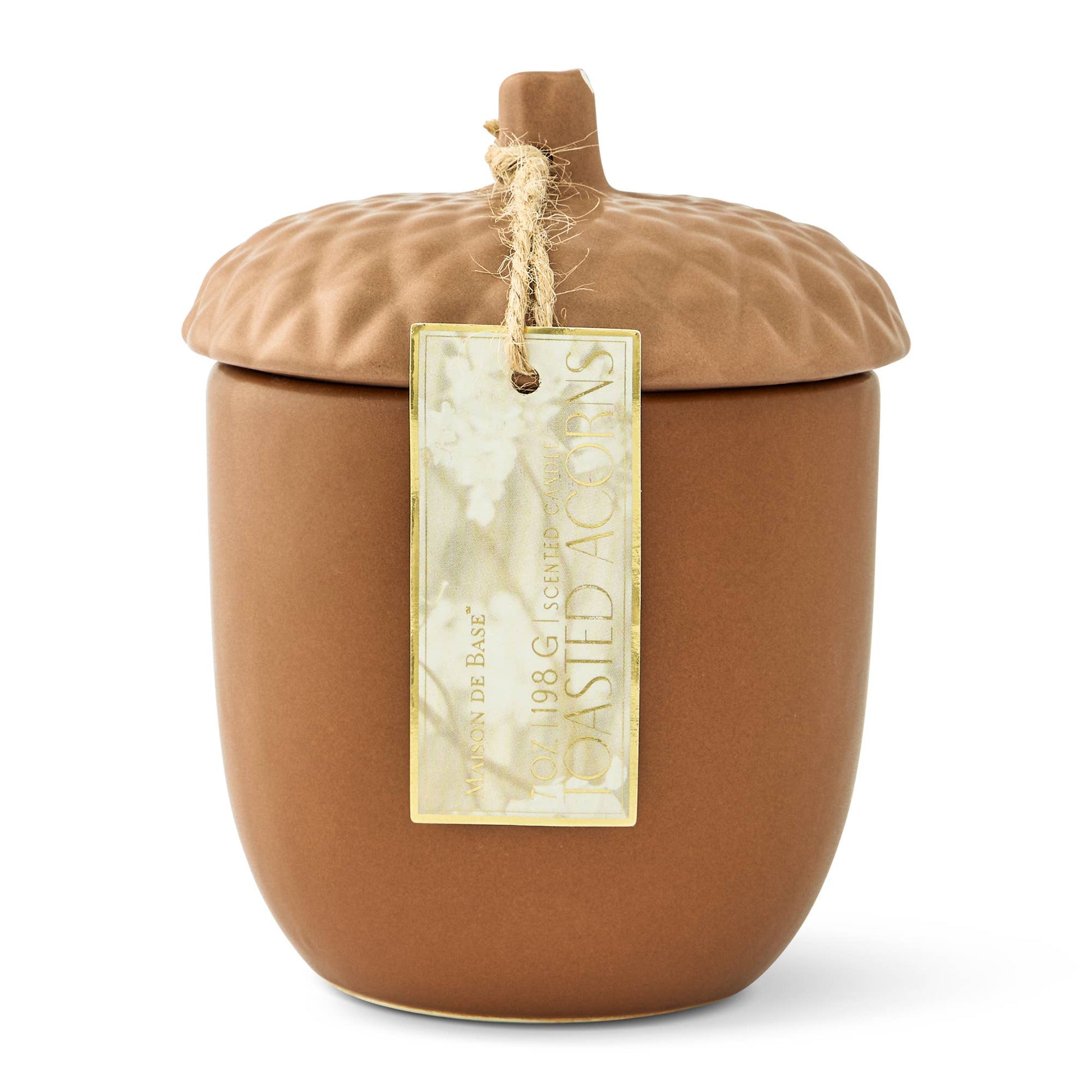 Bring the cozy feeling of fall indoors with this 7oz acorn-shaped ceramic candle. Its rich, dark brown color and charming lid add a playful touch to your decor, while the warm scent of toasted acorns fills your space with comforting autumn vibes. Perfect for creating a snug atmosphere on crisp evenings.