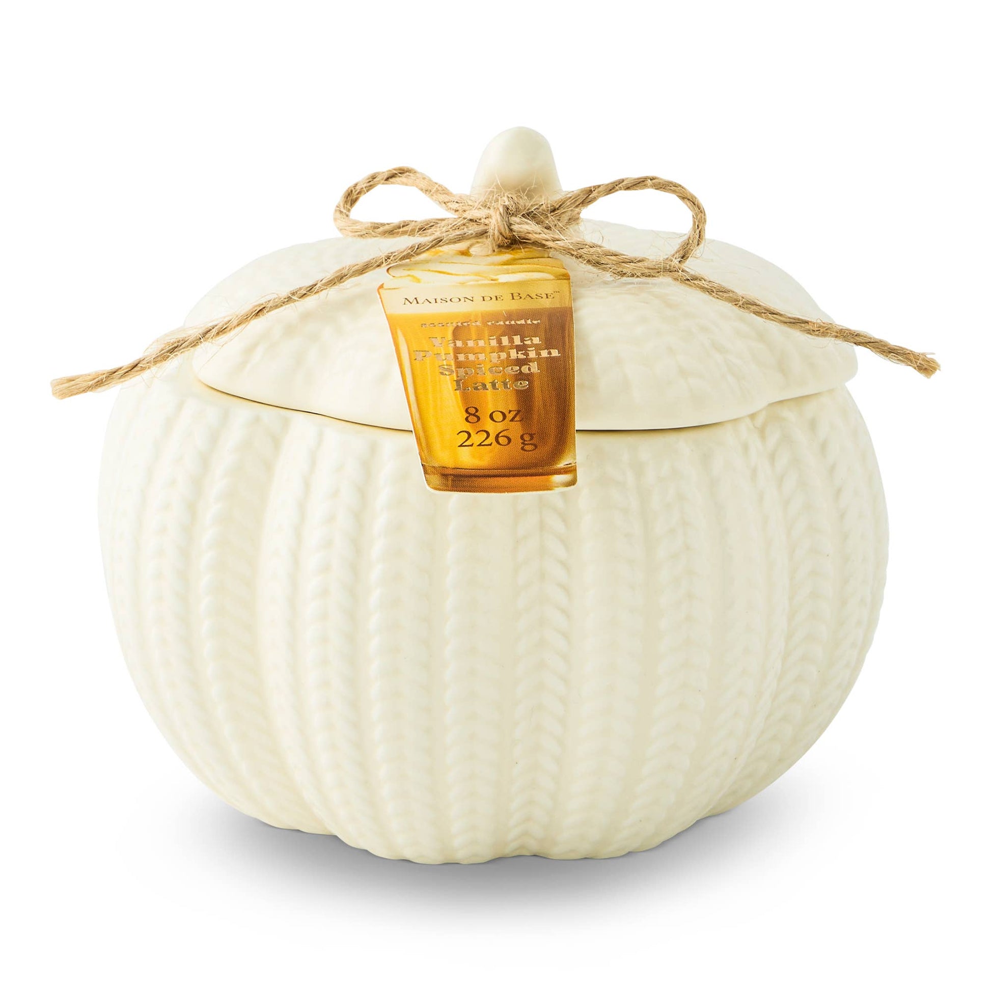 Cozy up your space with this 8oz sweater pumpkin-shaped ceramic candle, scented with warm vanilla pumpkin spice latte. Its charming sweater pattern and pumpkin design bring the perfect fall vibe, making every room feel cute and inviting. Light it up to enjoy a delightful blend of autumn aromas that capture the spirit of sweater weather and pumpkin treats.