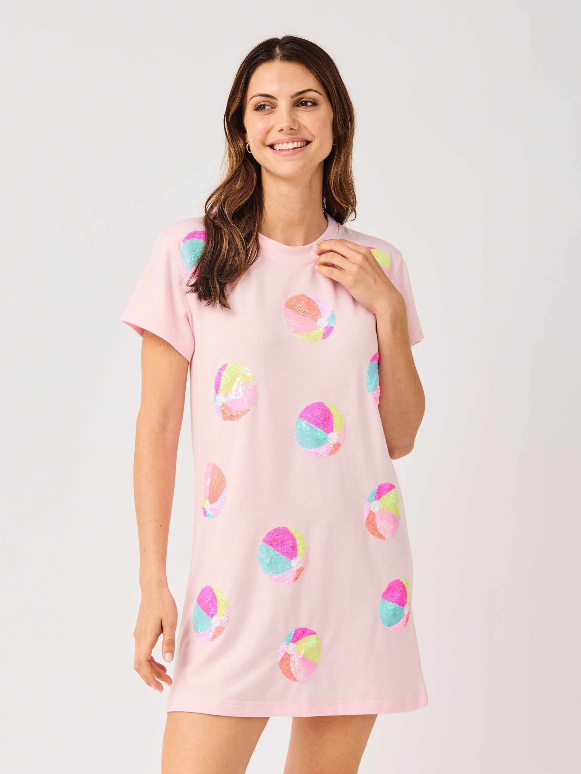 Get ready for fun in the sun with the Anna Dress. Featuring vibrant sequin embroidered beach balls, this dress brings a splash of summer spirit to your wardrobe. With its classic crew neckline and easy pull-on style, it's perfect for making the most of those sunny, fun-filled days.