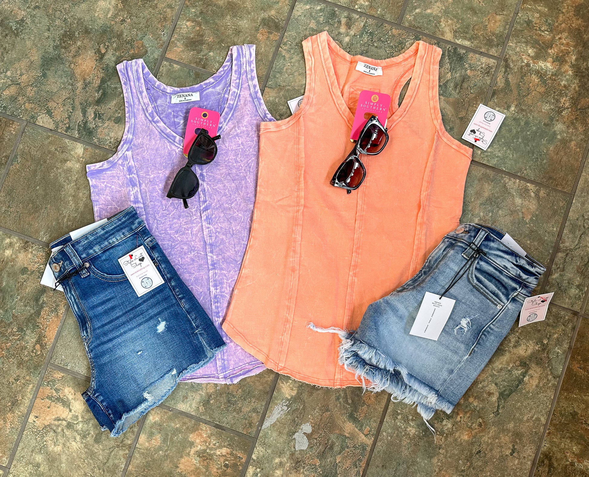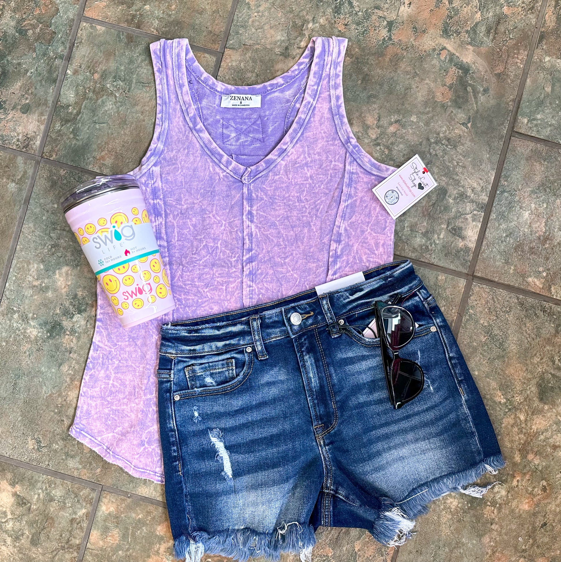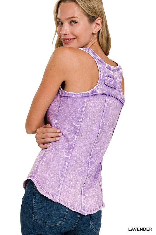 Crinkle Washed French Terry Raw Edge Tank Top - Lavender