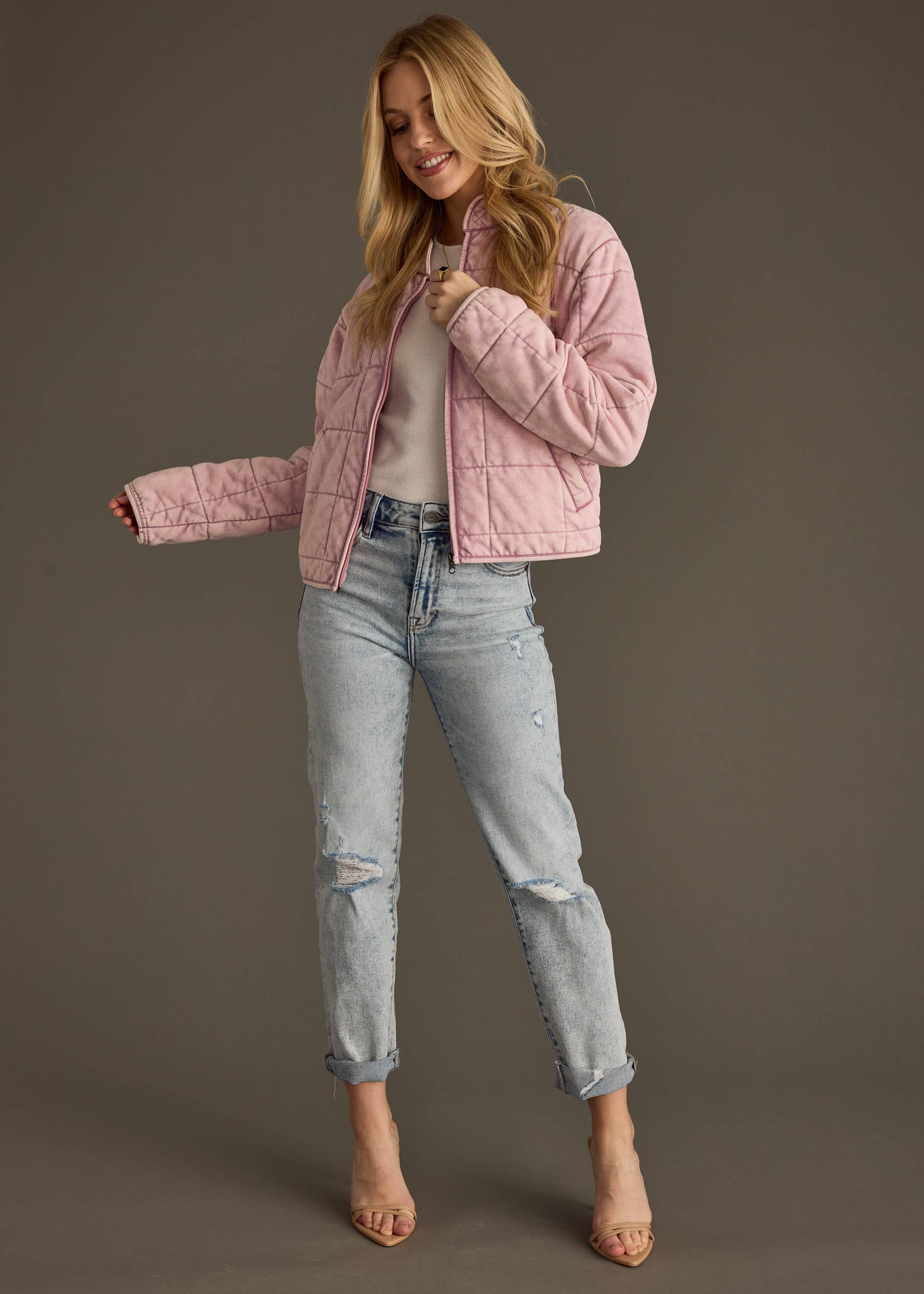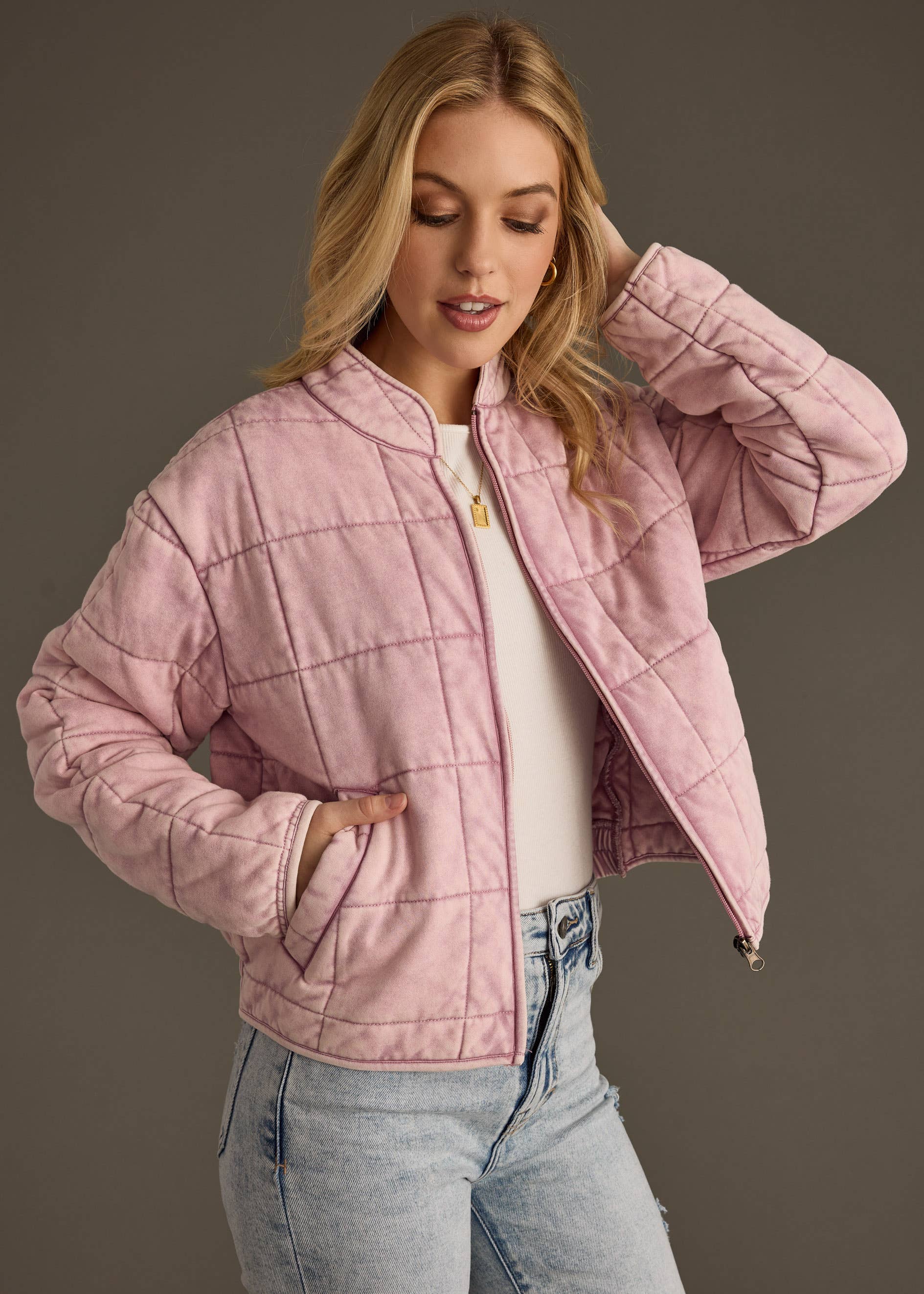 Dusty Pink Washed Quilted Jacket