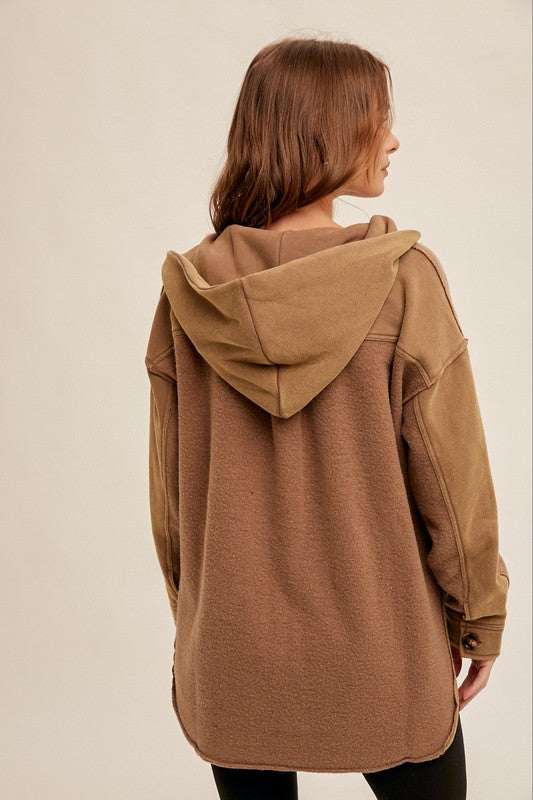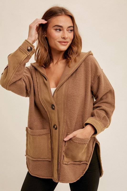Hem & Thread Washed Fleece Hooded Cardigan