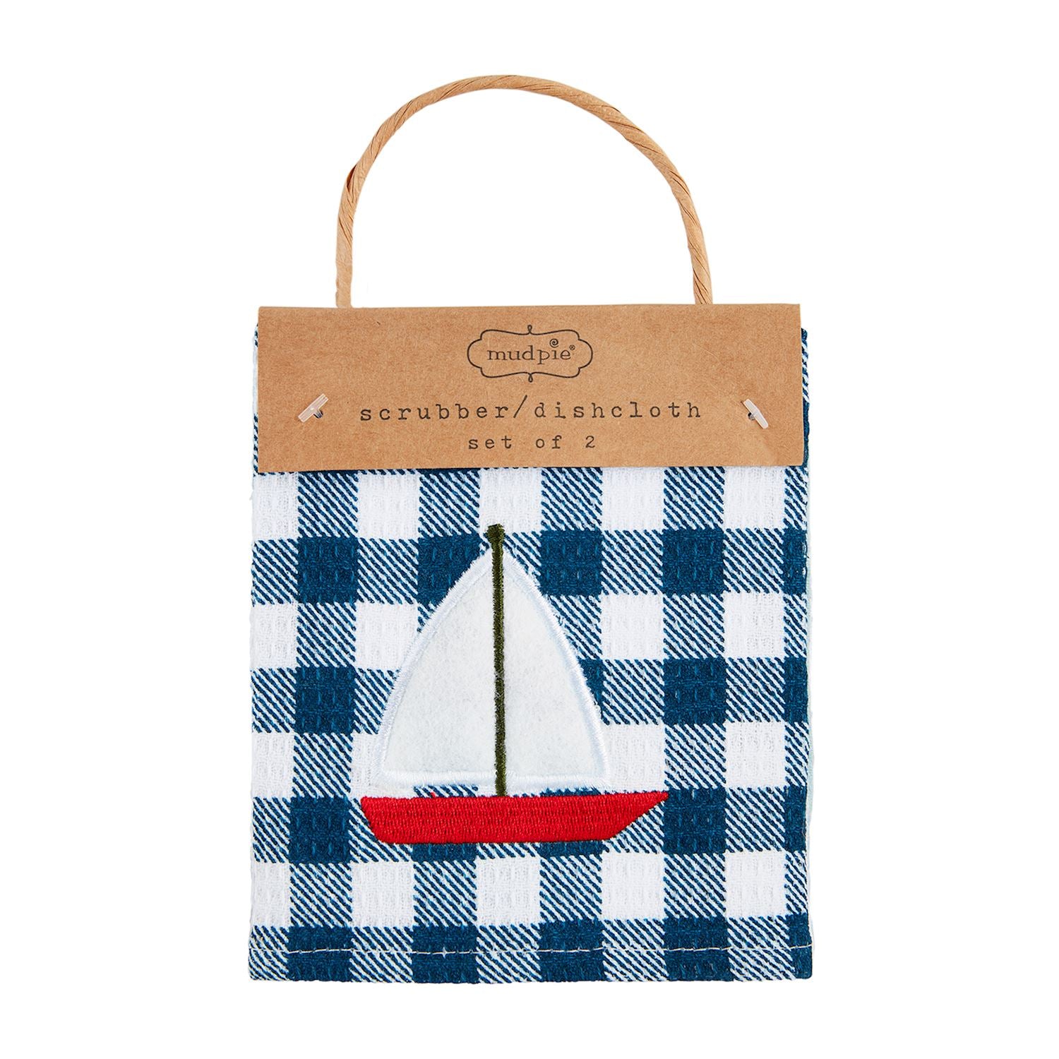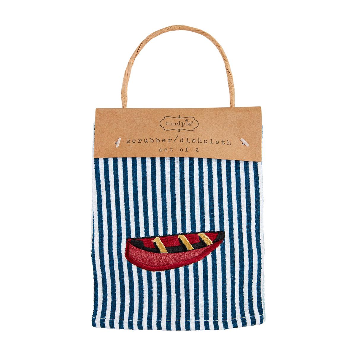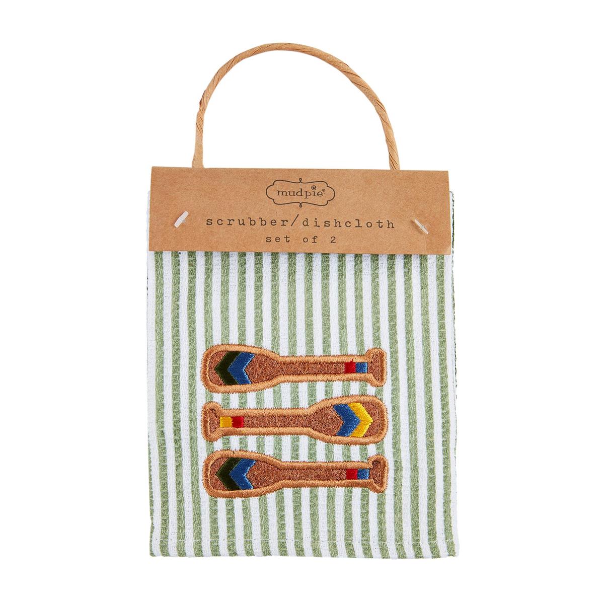 Set of two waffle weave dishcloths with scrubby sponge appliques.