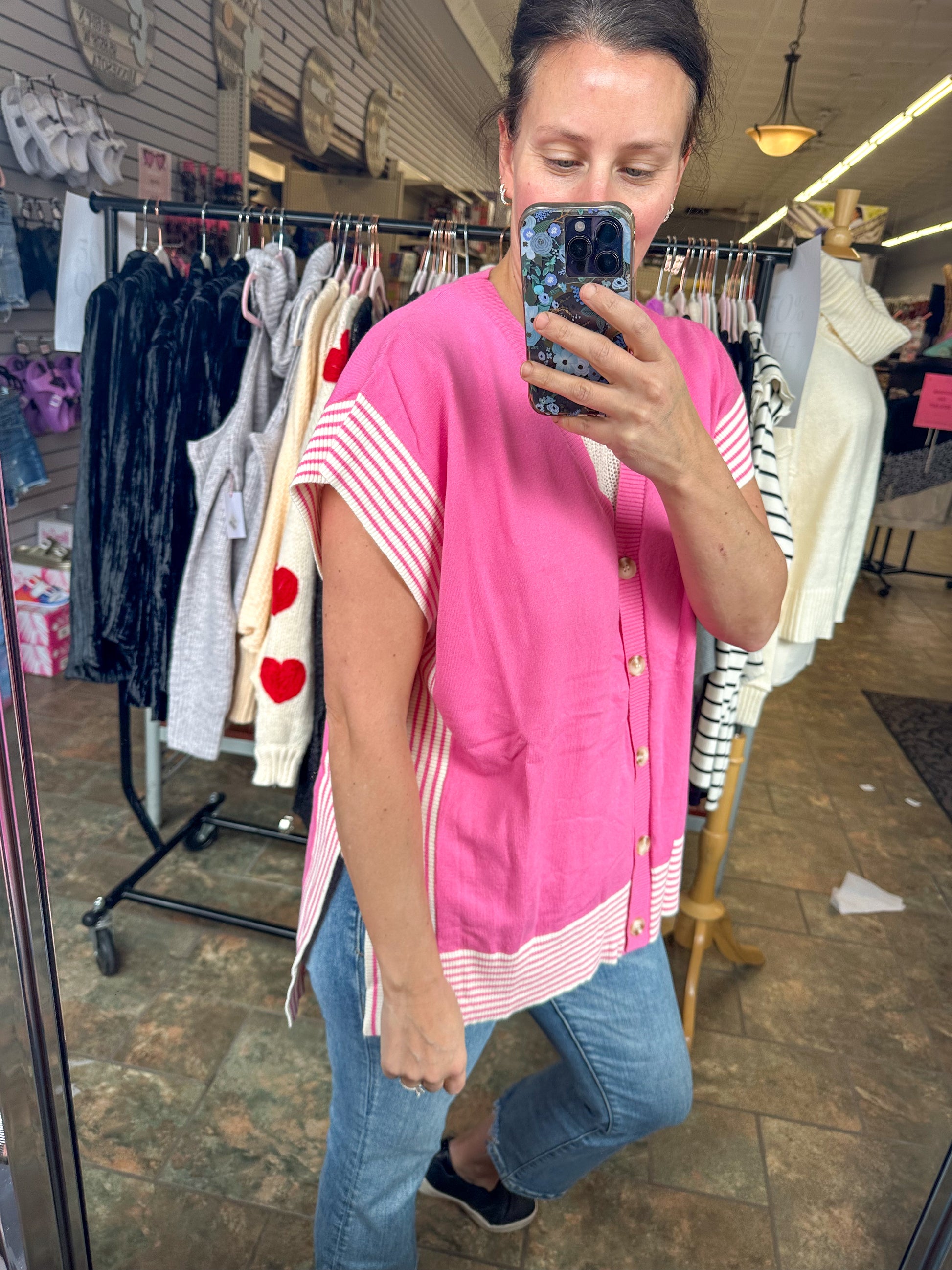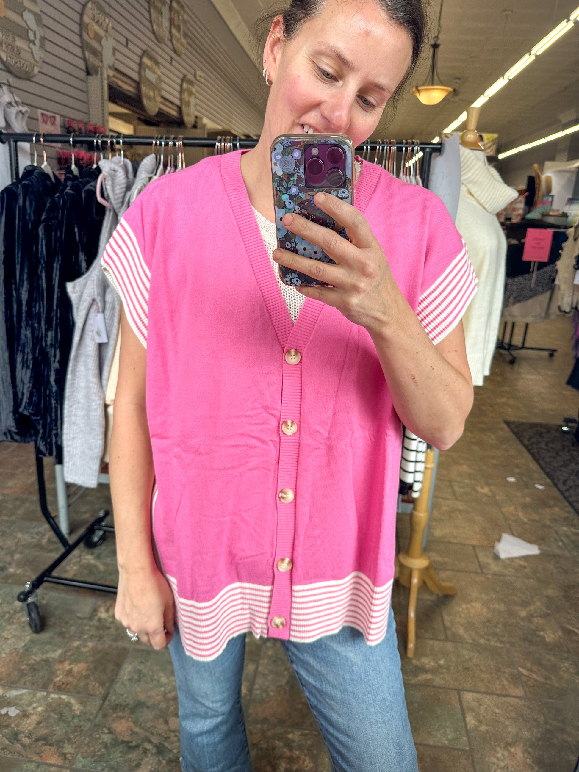 Get ready for summertime fun with our Pink Summer Sweater Vest! Lightweight and soft, this vest is perfect for layering on those breezy days. Pair it with your favorite summer outfit for a fun and playful look. (You'll be the envy of all your friends!)
