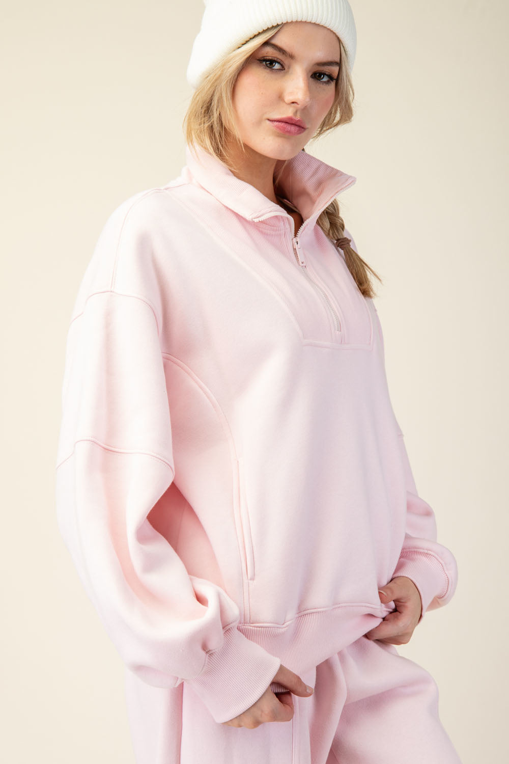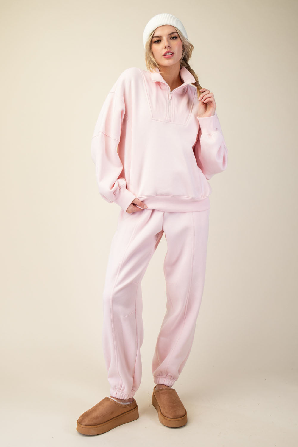 Rae Mode French Terry Fleece Quarter Zip - Strawberry Milkshake