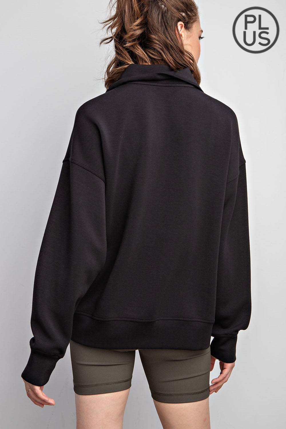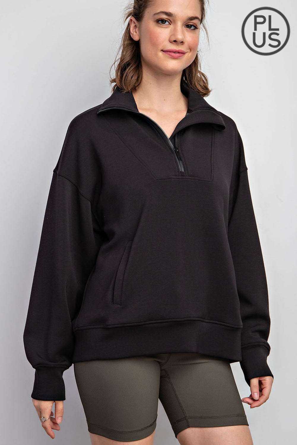 Rae Mode Modal Poly Span Quarter Zip Mock Neck Pullover - Plus Size