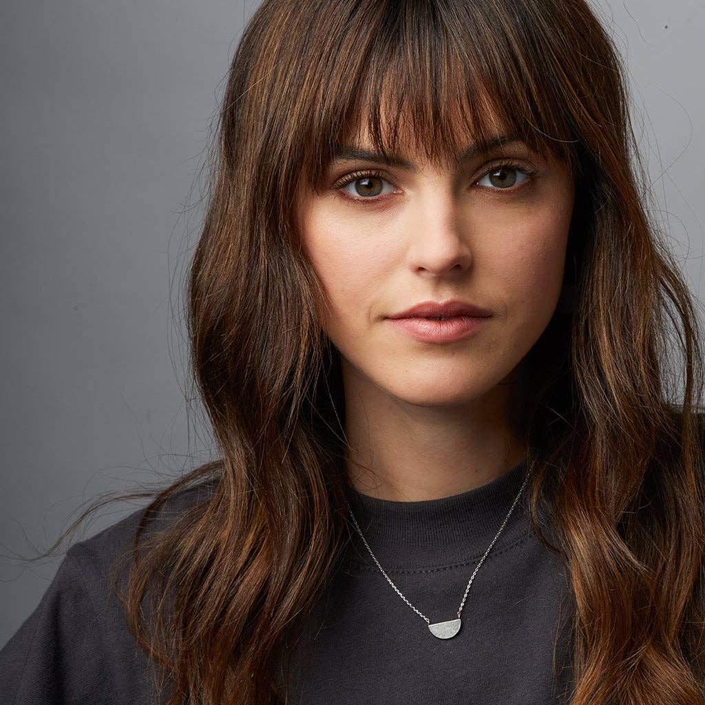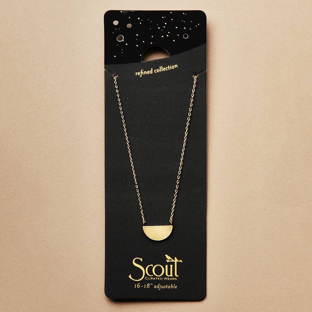 Simple modern silhouettes elevate the neckline. Wear a single necklace or layer a few. Made with high quality 925 silver and 18k gold vermeil chains. • Materials: Brass pendant plated in 14k gold, adjustable 18k gold vermeil chain, logo tag, lobster clasp • 18k gold vermeil 16"-18" adjustable chain • Pendant: .5" x .25" •