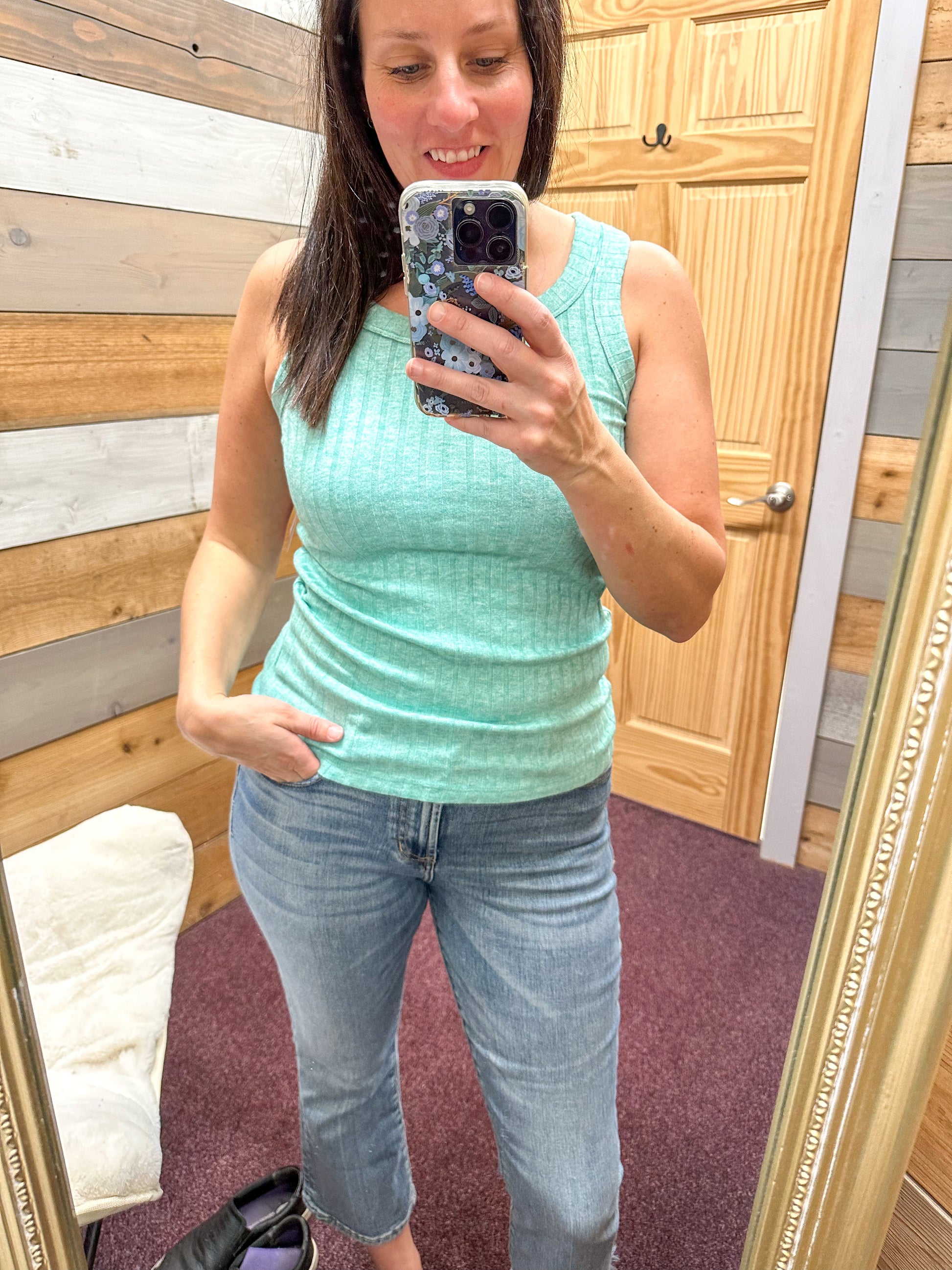 Ribbed Scoop Neck Sleeveless Tank - Kelly Green