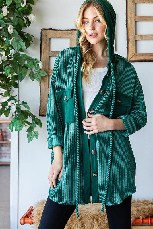 Take your layers to the next level with this ribbed shacket! It'll make you stand out from the crowd in cuteness and comfort. Perfect for casual days, layering, and effortless style. Get ready to turn some heads!