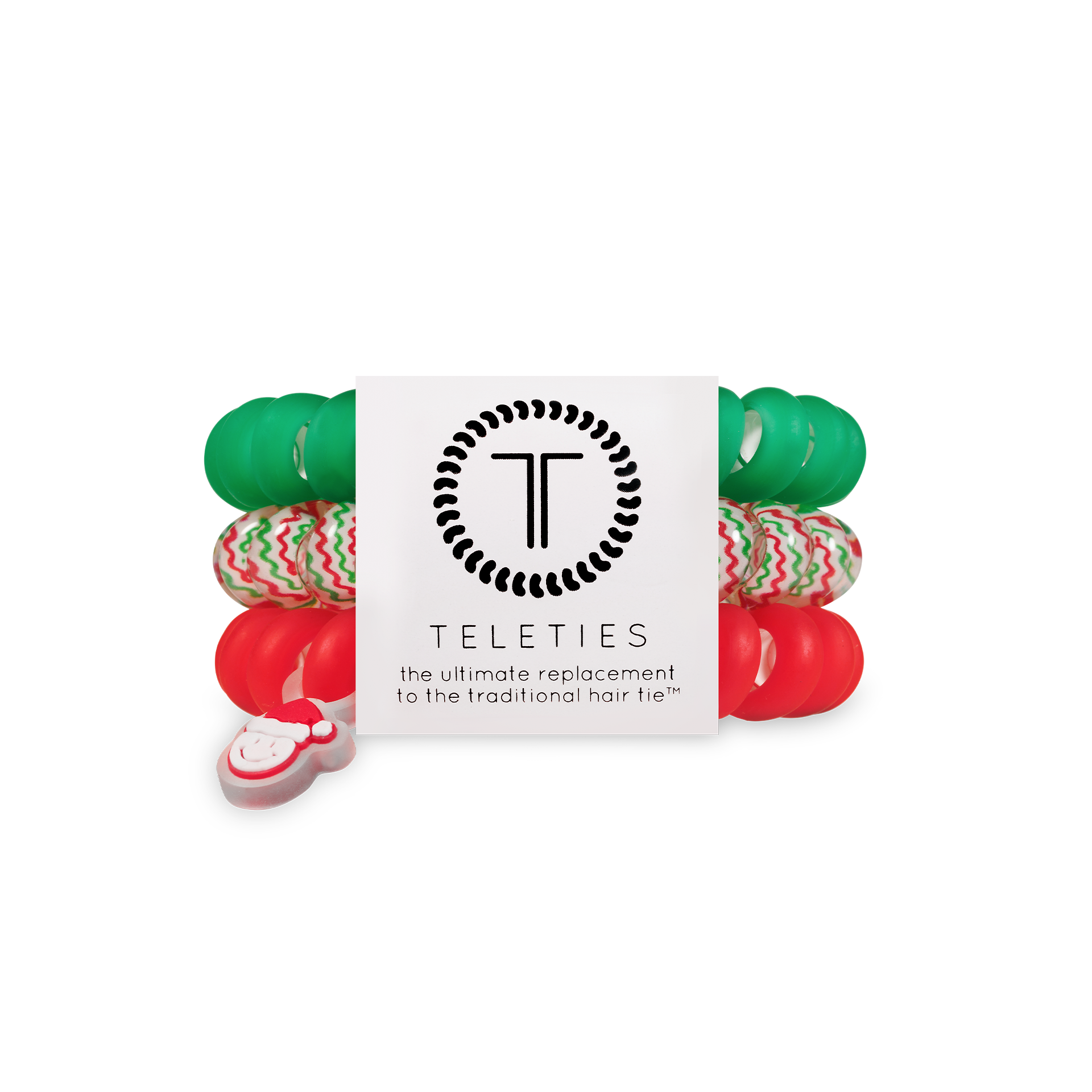 Celebrate Christmas with the perfect stocking stuffer and holiday accessory! Elevate your hair game and style with TELETIES – the hair tie that offers a strong grip without breakage and doubles as a trendy bracelet. Durable, chic, and practical, TELETIES are crafted to handle everyday wear while adding a stylish touch to your look. The ultimate holiday accessory for both your hair and wrist!