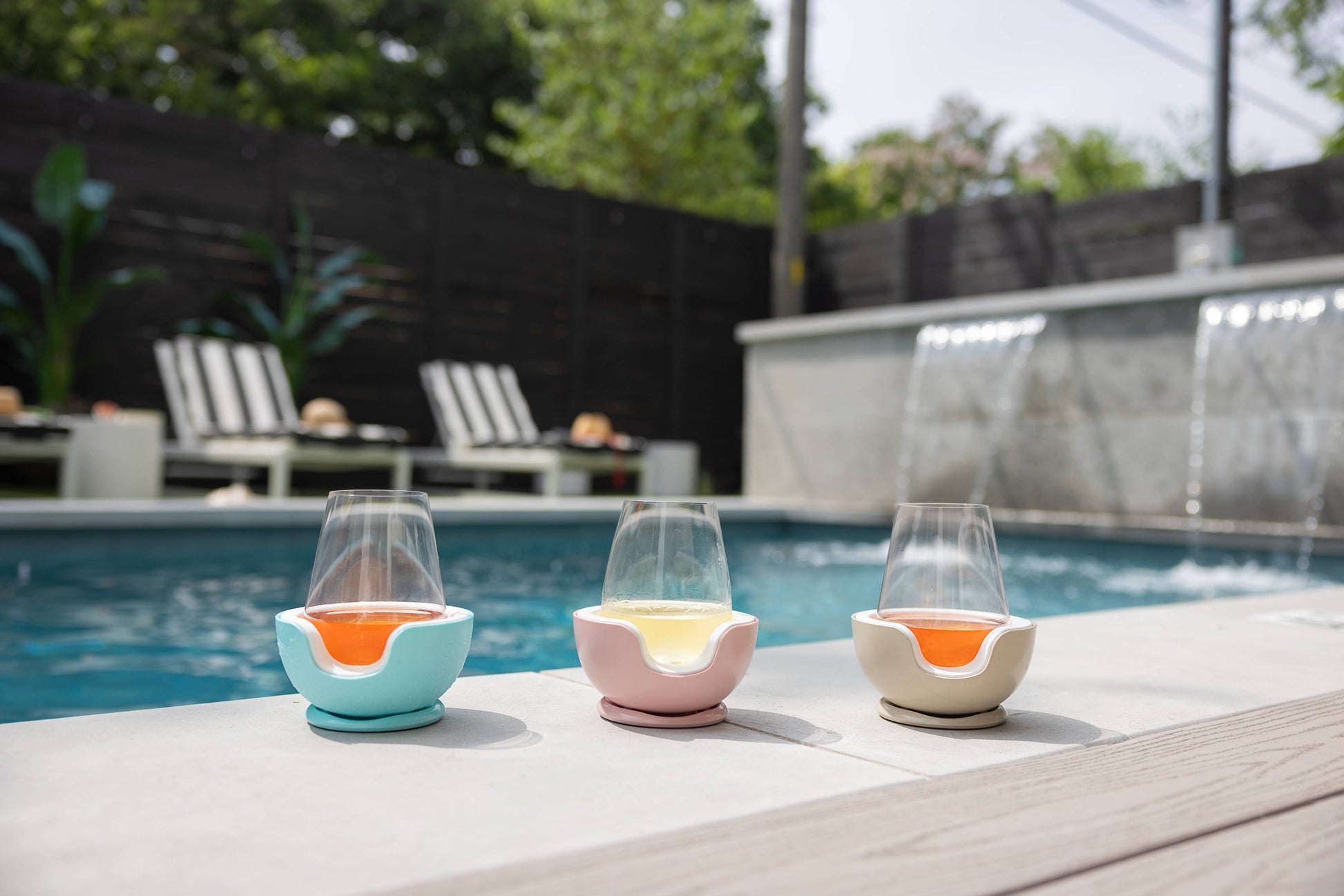 Detachable and refreezable Chill Cradle actively chills the wine in your glass.