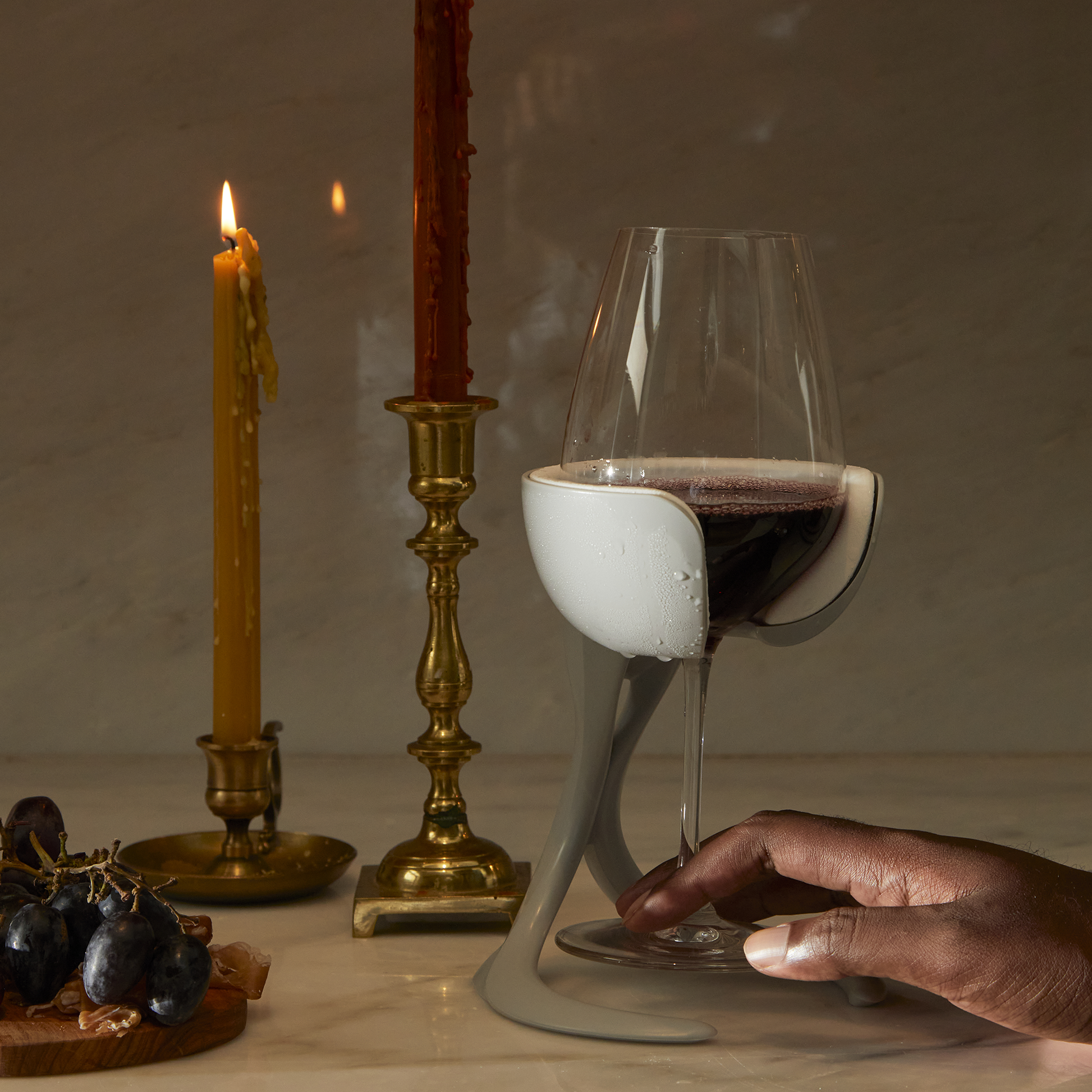 Keep wine perfectly chilled in your own wine glass. No more clunky metal or plastic tumblers, or ice in your wine. Detachable and refreezable Chill Cradle actively chills the wine in your glass. The perfect gift for any wine lover.