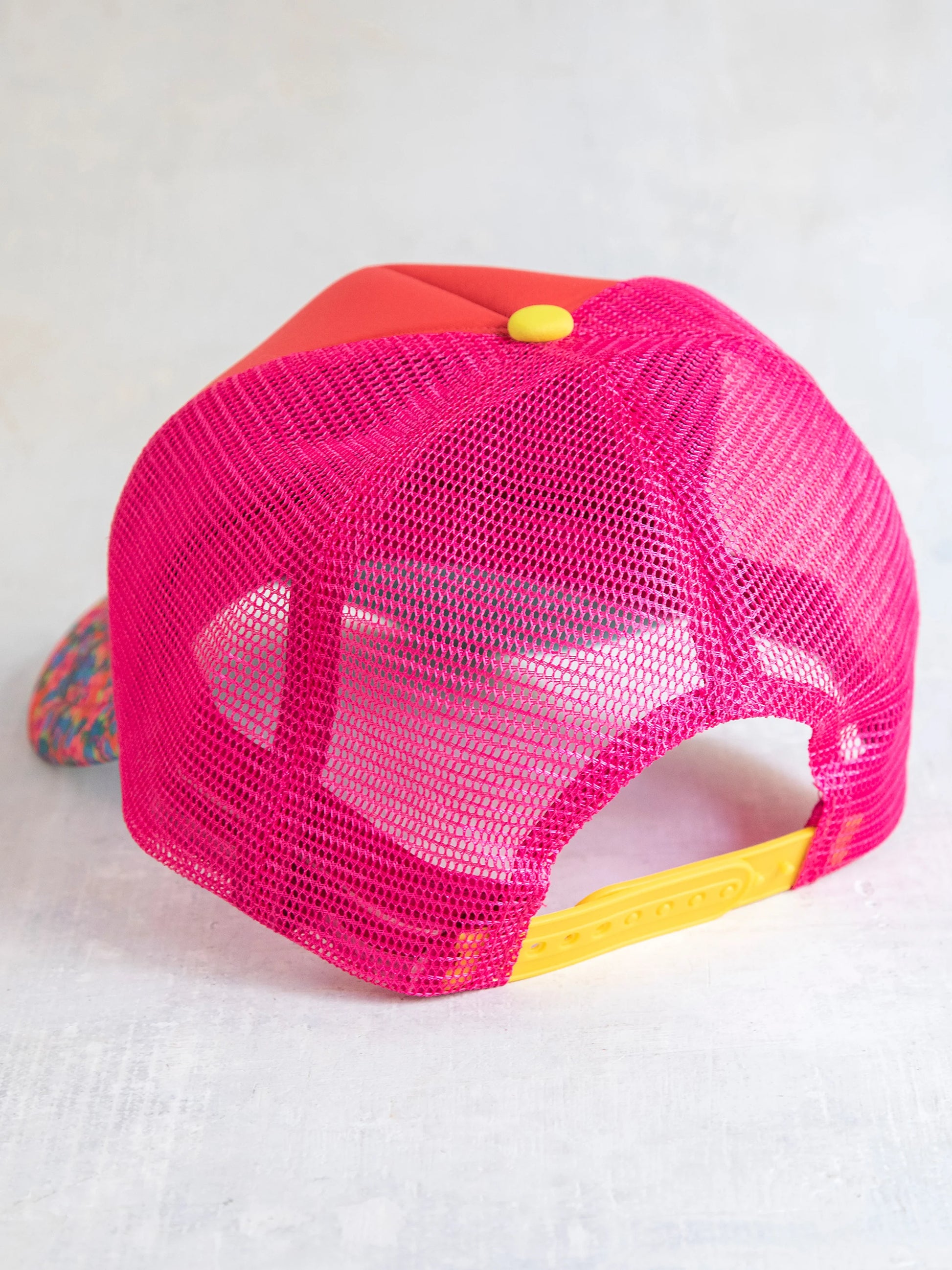 Its soft, quick-drying neoprene & mesh material! The bold letters! Just throw it on or toss it in your bag! It's a cute & easy accessory to complete your outfit!